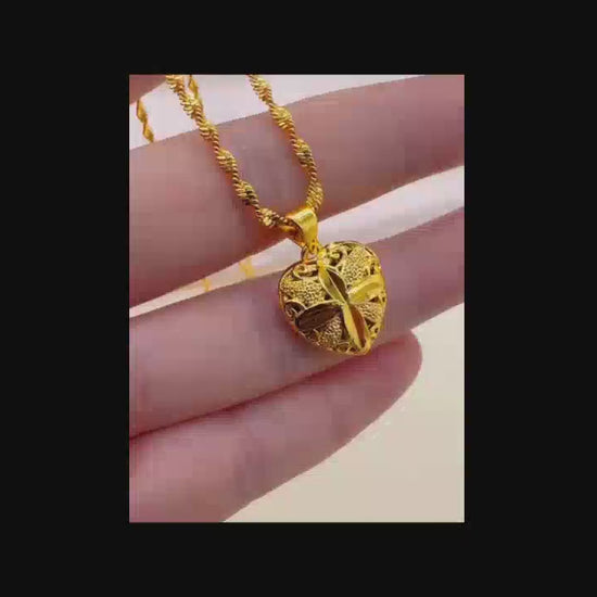 Women' Vintage Brass-Plated Heart Necklace - Ethnic Wave Chain Jewelry